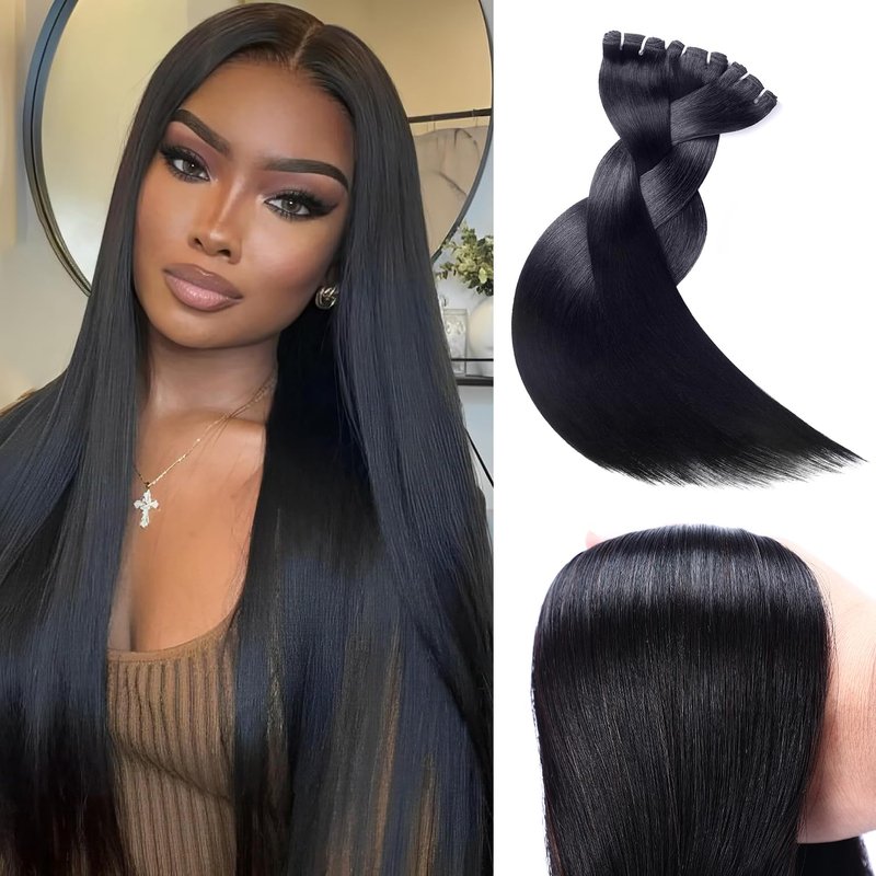 - 【High Quality Hair Extensions】100% premium real human hair, 16A high quality, tangle free, shedding free. The hair feel smooth and soft. Our straight human hair extensions can be curled as you like. Can last 6-12 monthes with good care.