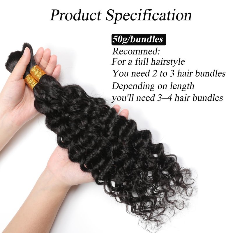 - 💎Length and Weight: The length of Water Wave Bulk Human Hair Wet and Wavy is from 14 inch to 24 inch, and the weight is 50g per bundle. If you like full head braids, we recommend you purchase 6-8bundle. One pack has two bundles, the weight of single bundle is 50g.