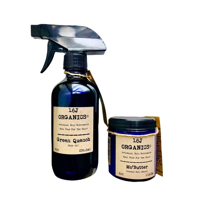 16J Organics Handcrafted Skin Care Moisturizing & Nourishing Spa Gift Box Includes Two of 16J Organics’ Signature Handcrafted Products "Green Quench" and "Mo'Butter"-100% Natural, Organic, Raw, Nutritionally Dense Food Grade Ingredients.