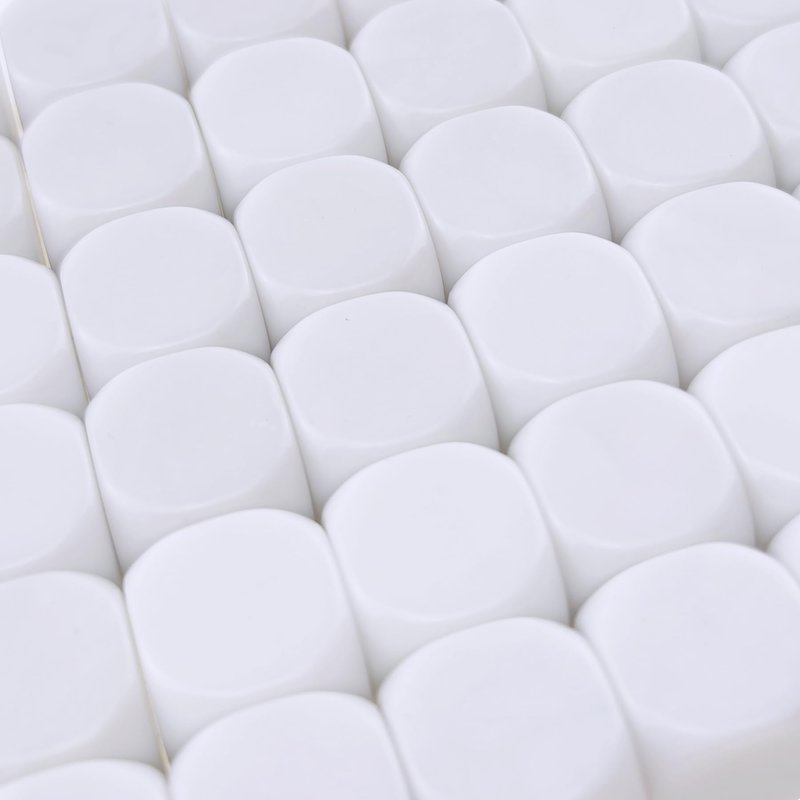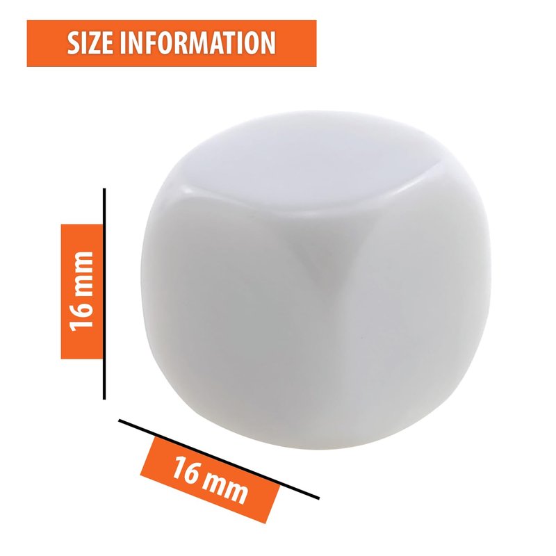 IFAMIO 16MM Blank White Dice Set Acrylic Round Corner D6 Dice CubesThe package comes with 50 pcs round corner blank dice. Perfect for math, counting teaching tools, puzzle blocks, and games. Made of premium acrylic with smooth surfaces, easy to write, paint, and draw.So what are you waiting for? Get IFAMIO 50 pcs 16MM blank white dice set right now.