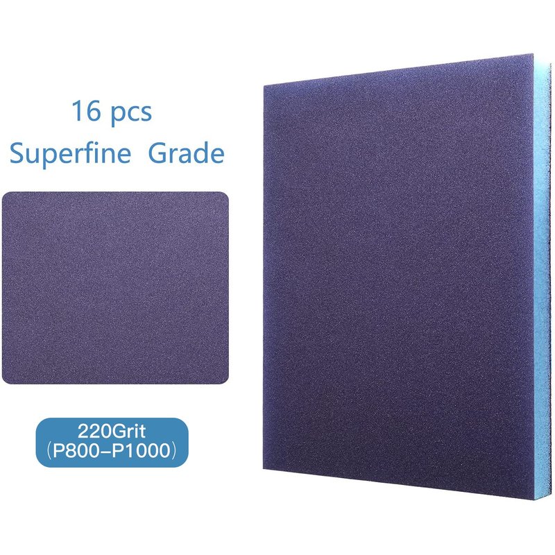 - 【 Package Content 】16 pcs sanding blocks.The sanding blocks are made of Brown alumina and blue sponge. 220 Grit Super Fine (Grade 800 to 1000).