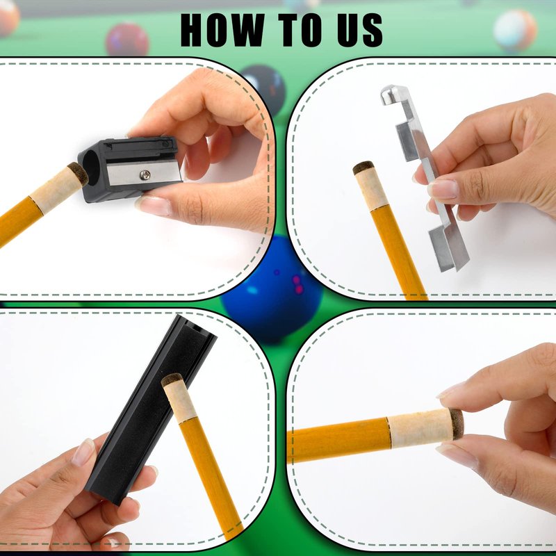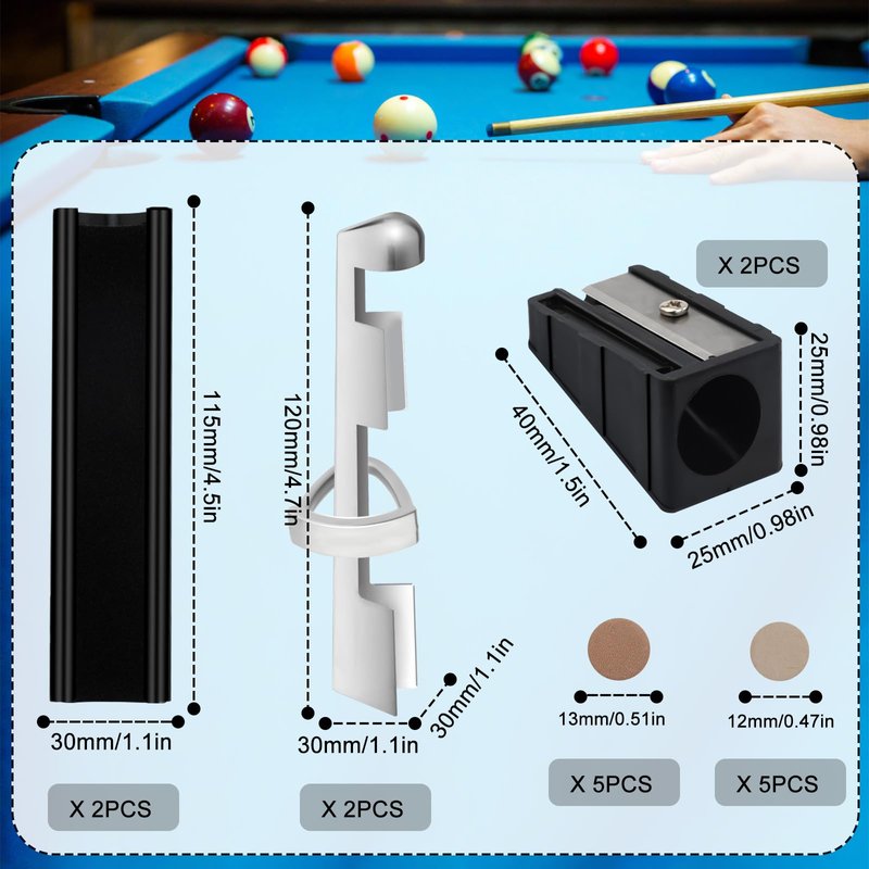 - Package Content: 2 billiard cue clips, 2 shapers, 2 billiard cue tip trimmers, 10 billiard cue tips, 16 in total, enough for you to repair billiard cue.