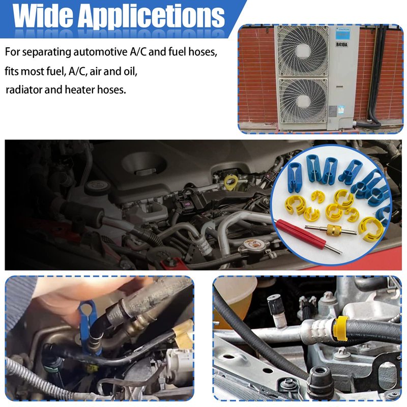 The comprehensive disconnect tool set for separating automotive ac hose and fuel lines, work for most fuel lines, air conditioning lines, air and oil pipes, radiator and heater hoses. Universal for automotive AC fuel and transmission systems.