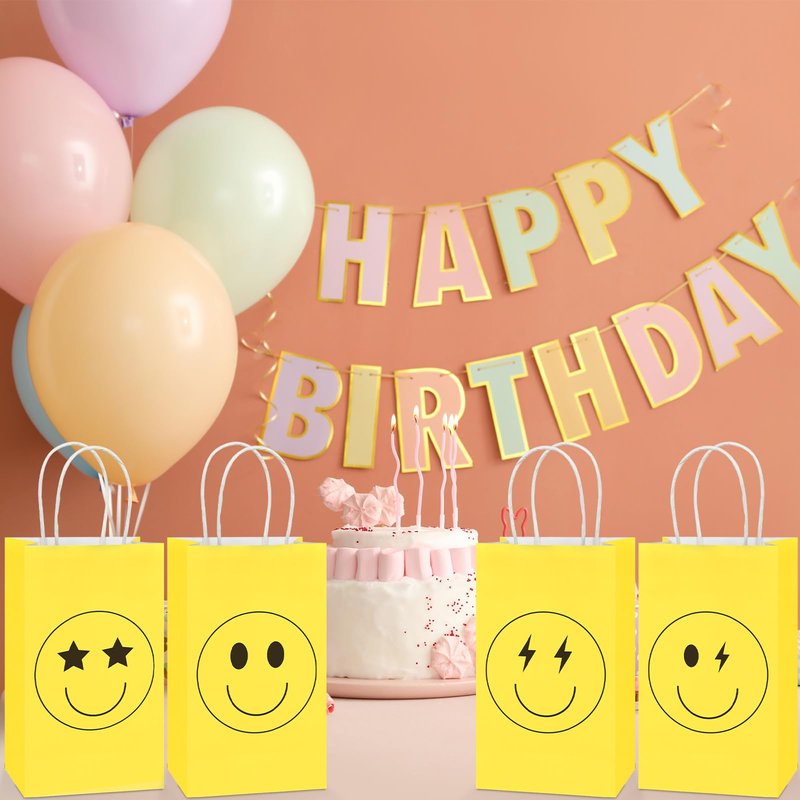 Smile face birthday treat bags can be used for birthday parties, school parties, students back to school, weddings, Halloween, Christmas and any other holiday.
