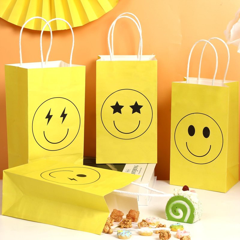- Package included: You will get 16 smile face party gift paper bags in 4 styles, perfect for children's birthday party gifts, you can use these cute bags to hold some gifts for the guests attending the party.
