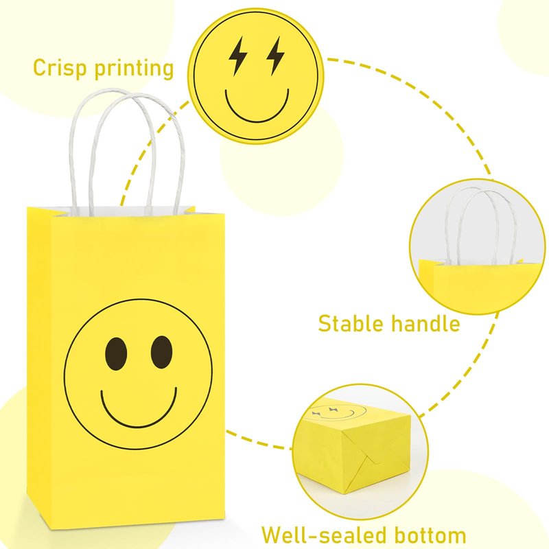 - Durable paper material: Smile face goodie bags are made of high quality materials, reliable and sturdy, not easy to tear or wear, lightweight and portable, can hold many candy, crafts, small gifts and other items, suitable for repeated use.
