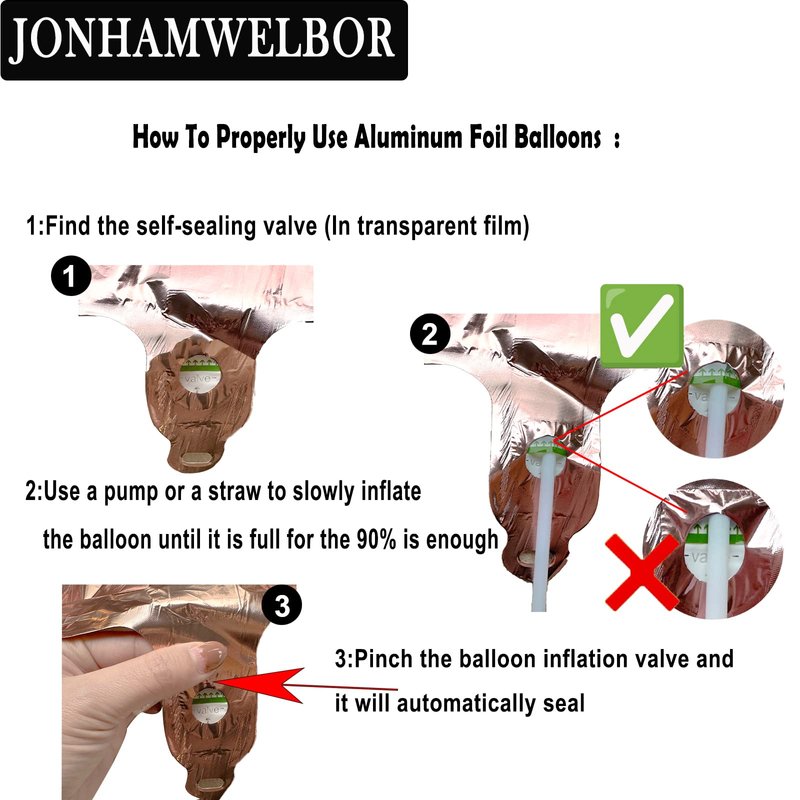 - TIPS FOR NUMBER BALLOONS: Due to the thermal expansion and contraction characteristics of aluminum foil,please avoid filling more than 90% of air or helium.If it is over-inflated,it can easily cause the balloon to explode at high temperatures.Please avoid leaving the balloons in an outdoor high temperature environment for a long time.If the ambient temperature is too low,it will also cause the balloon to deflate.At this point,you can use the straw to inflate again.