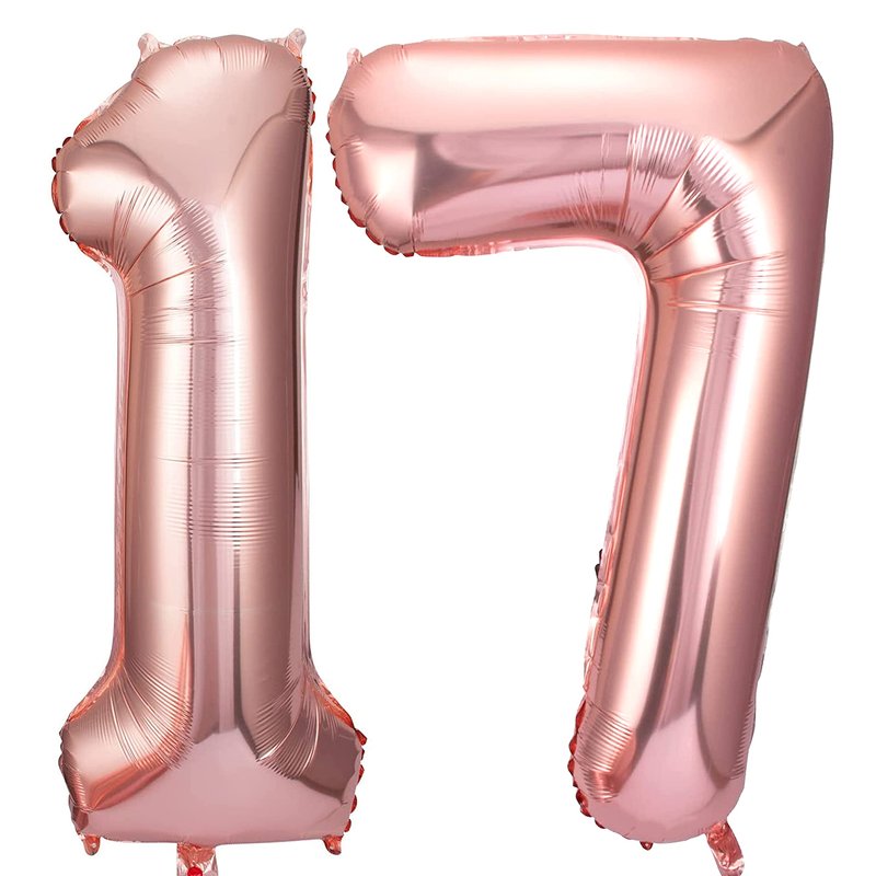 - PERFECT SUITABLE FOR:The Elegant Rose Gold 17 number foil Mylar balloons are the best choice for: 17th birthday party,17th wedding anniversary celebration,company 17th anniversary party or 71st birthday wedding anniversary party decoration.