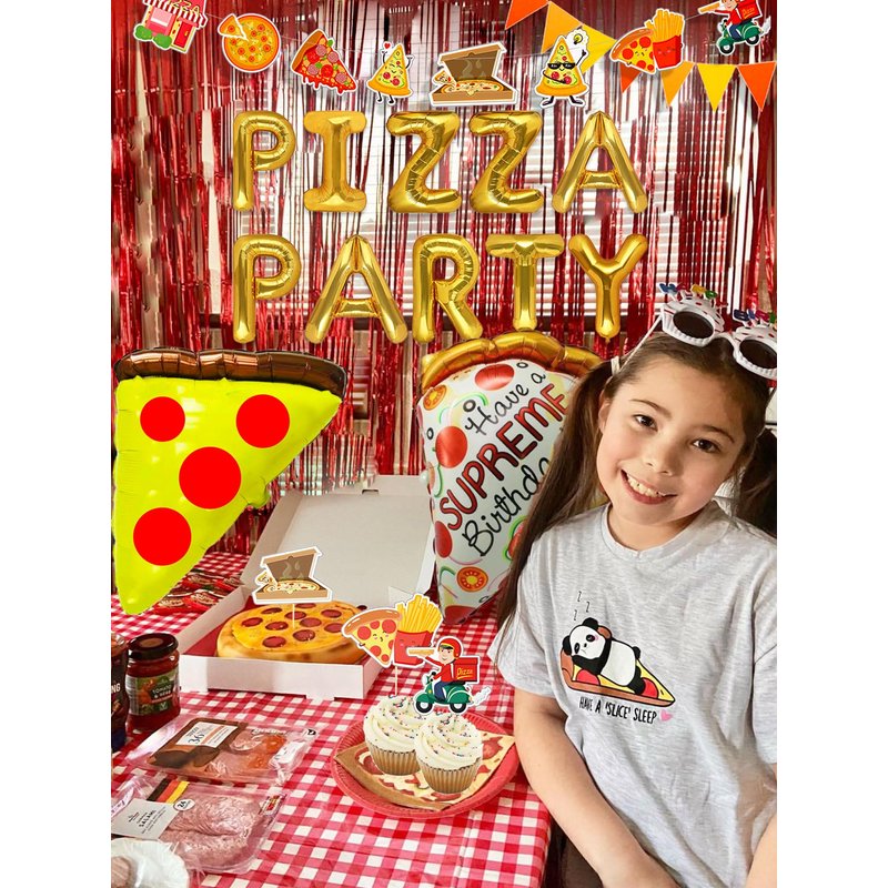 - Are you celebrating a special Pizza birthday party for someone? Our Pizza Party decoration supplies will add the touch to your cake and look great at your themed birthday party