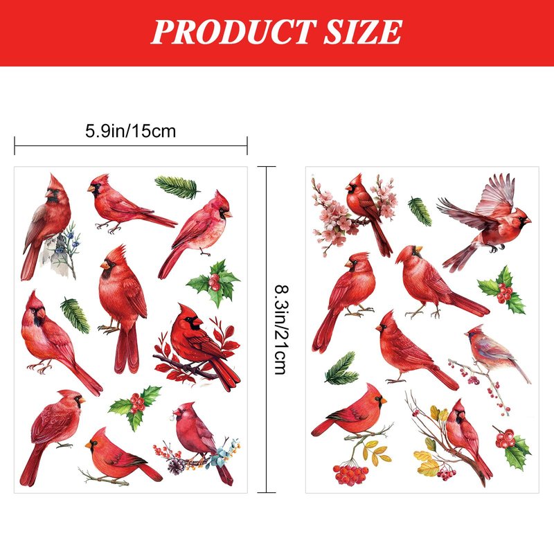 - Size: 6 x 7.87 inches (15 x 20 cm) for each tattoo sheet. Design includes: 17 Red Cardinals Birds.