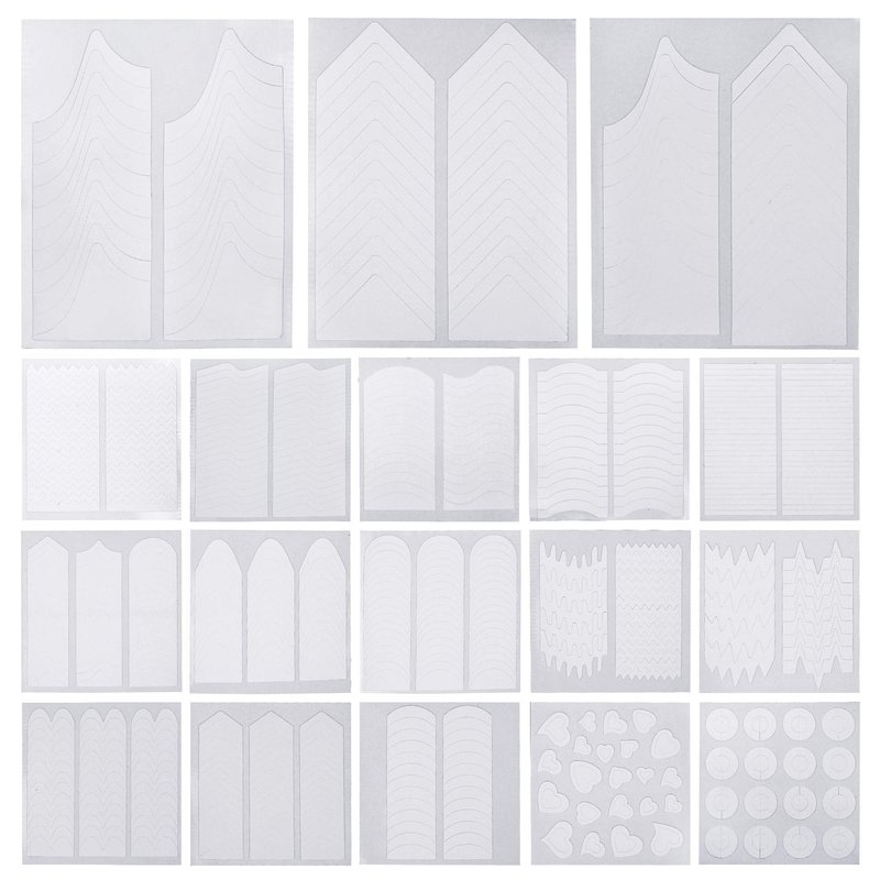 18 Designs French Manicure Nail Art Stickers, Self-Adhesive Nail Tips Guides for DIY Decoration Stencil Tools (18 Sheets)
