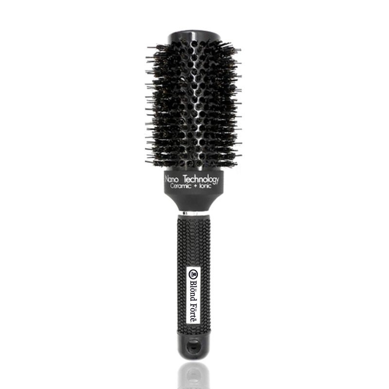 Our round boar bristle styling brush is a ceramic ionic round blow drying brush with a rubber cushion handle that allows comfortable, easy styling. This brush is anti-static, which reduces frizz, smooth and adds shines to hair. The ceramic ionic technology, improves texture, reduce brittle and split ends, seals cuticles, smooths hair, reduces frizz, adds shine, and softens the texture of hair from root to ends. It also heats evenly and protects hair from heat damage. This multi-functional blow dry brush is suitable for professional and at home use. Perfect for curling, blow drying, straightening, and adding volume to hair. Nano thermal ceramic ionic technology Anti-static Anti-bacterial Reduce drying and styling time Smooths hair and adds shine 100% natural boar bristles Protects hair from damage Reduce split ends Reduce frizz Health hair styling multi-functional styling Comfortable design and rubber cushion handle Round Boar Bristles: 100% natural boar bristles helps spread sebum and lubricate each strand of hair. It reduces frizz, do not damage hair while brushing, and do not rip hair or split ends. Large Round Design The large round natural boar bristles creates volume and beautiful shinny curls. Anti-static and anti-bacterial bristles and ceramic ionic technology protects hair from damage, smooths and reduce frizz. The vented ceramic barrel heats up fast and retains heat longer, distributes heat evenly and protects from heat damage. Available Sizes: 25mm (1 Inch) | 32mm (1.3 Inch) | 43mm (1.7 Inch) | 53mm (2.1 Inch)