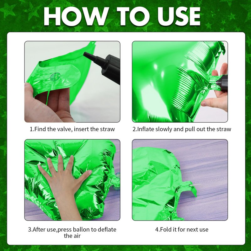 - Easy to Use: The green foil star balloons can be inflated with air or helium without any skill. This star foil balloon adopts self-sealing design, you only need to press the inflation port to seal it after finishing inflate, which is easy and convenient to decorate your party!