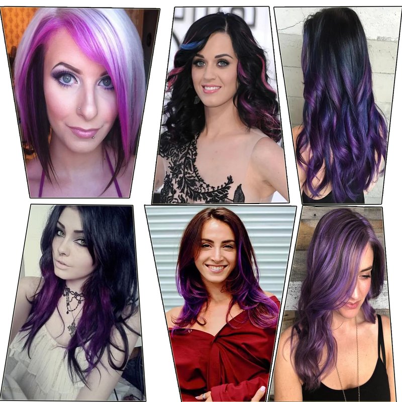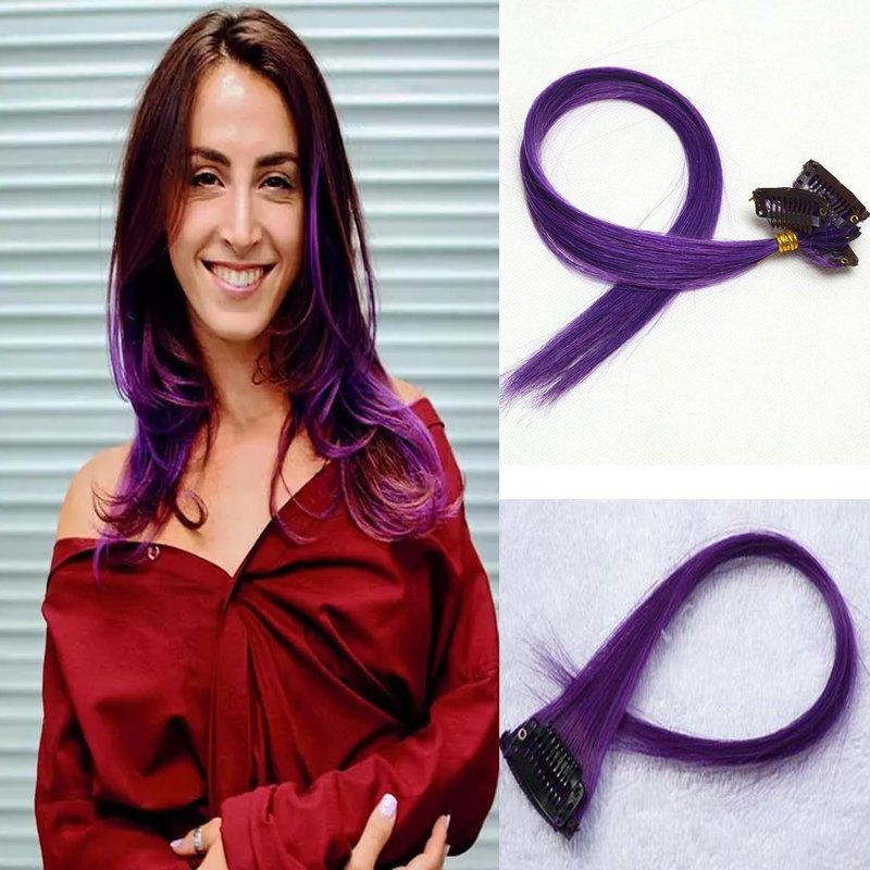18 Inch High light Clip in Human Hair Extensions 100% Straight Clip on Party Highlights Colored Hair Extensions 6 Pieces/set (Purple)