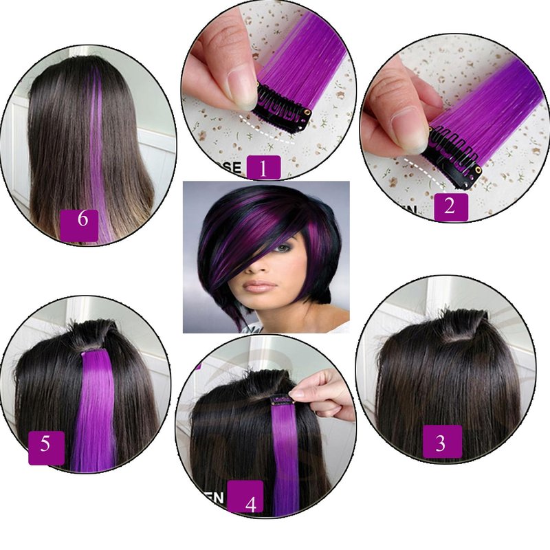 - 1.【Highlight Clips Hair Material】Funny highlight clip in hair extensions set 6Pcs are made of real hair from the donated or salon professional persons , silky and soft the same as your own natural hair. no tangling, no shedding. And the stainless steel clips are sturdy, invisible and light with a layer soft rubber to protect your natural hair ,making your highlight hair extensions feel smoother and softer and more beautiful .