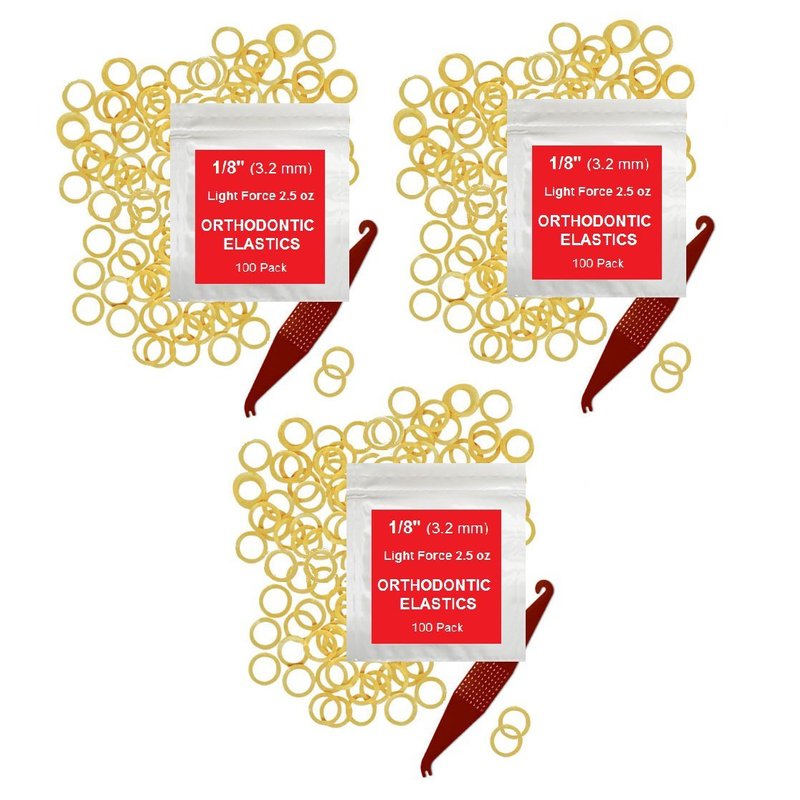 1/8 Inch Orthodontic Elastic Rubber Bands - 300 Pack, Natural, Light Force 2.5 oz - Dental Rubber Bands, Teeth Rubber Bands Gap Fixer, Dreadlock Rubber Bands, 1 Elastic Placer for Braces Included