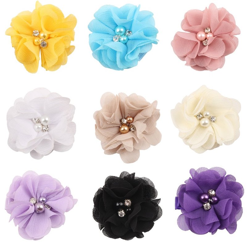 - Package includes: 18 Pcs of Different Colors Hair Bow Clips Chiffon Flower with Crystal Pearl Perfect gift bows hair clips.
