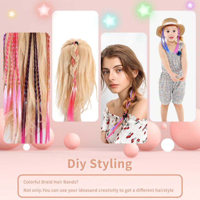- 💈High-Quality Material: The colorful braids hair extensions are hand-woven with high-quality polyester microfiber, with bright colors and silky touch. Very suitable for daily and long-term wearing, making kids' hair more shiny and charming in the crowd.