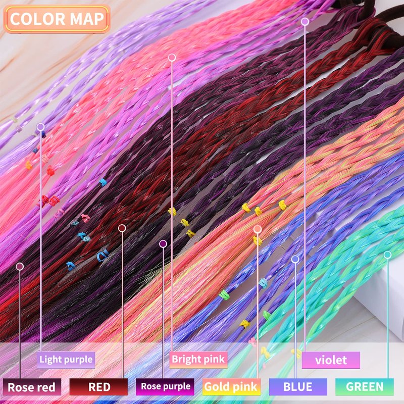- 💈Easy to Use: Each colored braids hair extension is attached to a soft elastic rubber band, which can be easily tied to the hair when doing styling without hurting the hair, and it is not easy to loose after long-time wearing. Suitable for all hair colors and all ages, especially busy mothers and daughters.