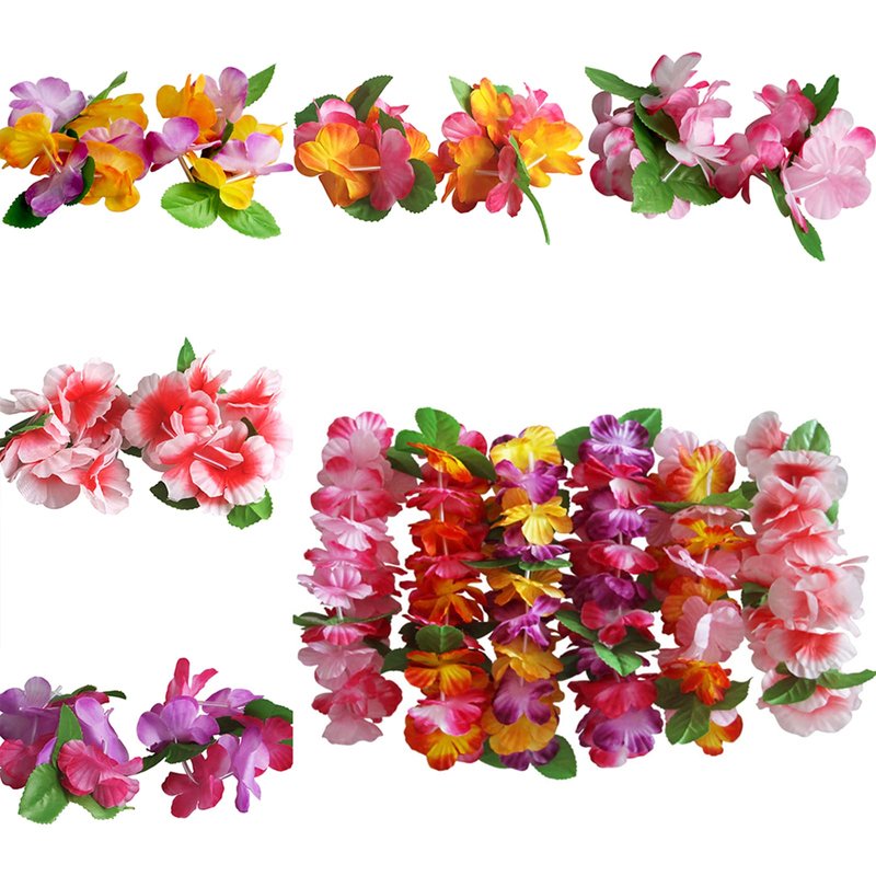 - 【HIGH QUALITY】 Excellent handmade soft materials and exquisite workmanship, hand-crafted carefully down to every detail to give a stunning, magical, sexy, lovely chic look. It is made of high quality eco-friendly smooth shiny plastic, package: 6 pcs headband + 12 pcs braceklets, approximately circumference for headband is 19.7", for bracelet is 8.7". The hawaiian set are so lovely with good luck, let you more cute and attractive. Add it to your cart and enjoy it with your friends and family