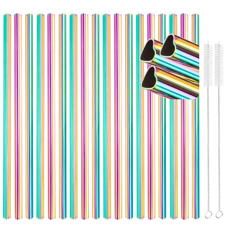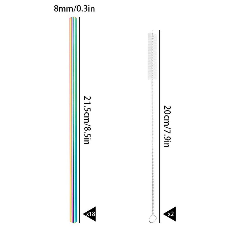 Tomorotec Stainless Steel Drinking Straws with 2 Cleaning Brushes (Rainbow, 18-Pack)