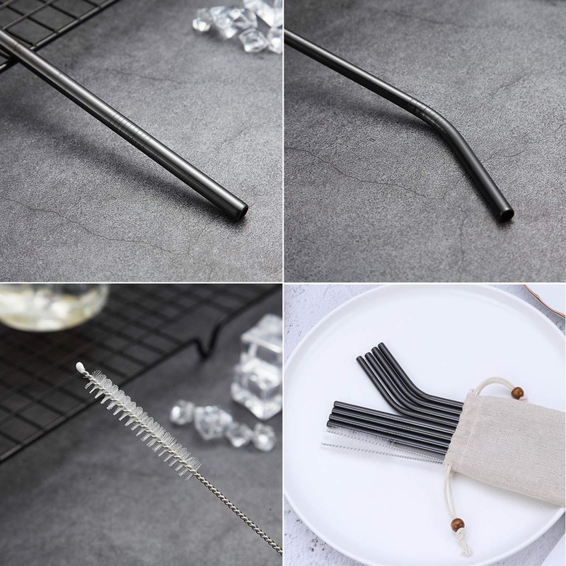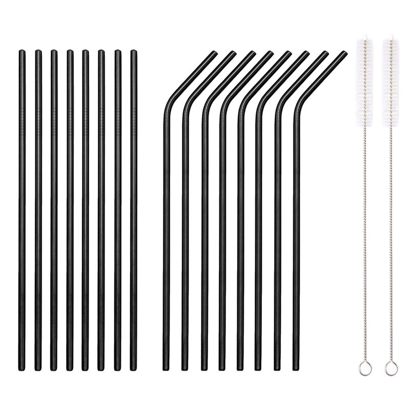- Black 18-Piece Straws set Includes: 8 Straight/8 Bent/2 Brushes/1 Portable Pouch - Straws Size: Lenght 8.5 '' - Diameter 0.2 ''.