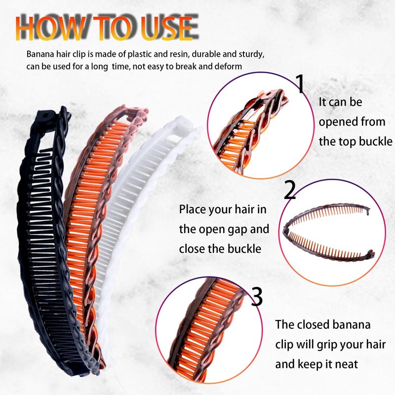 - 【Easy to use】You just need to open the banana hair clips correctly, then fix it on your hair and clamp it tightly. It can keep your hair neat and suitable for various style, bringing you a good user experience.