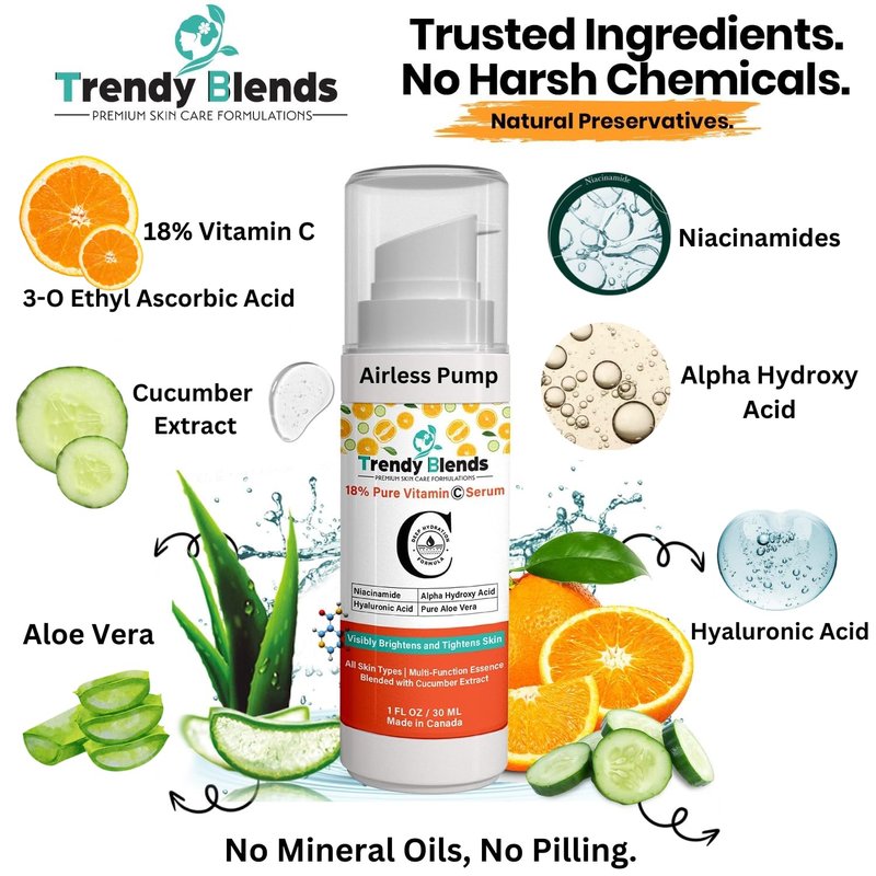 - [Trendy Blends Promise] Carefully and Scientifically formulated to provide your skin with all the necessary ingredients to have a glowing complexion while maintaining deep hydration with low preservatives, Mineral oil free, cruelty free, paraben free, alcohol free and fragrance free. If you're not completely satisfied, you can return our product and receive a full refund.