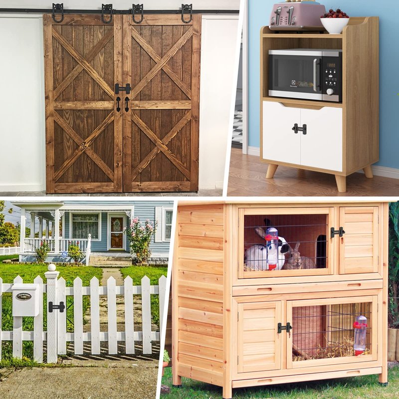 - 【Universal Use Door Locks】Sliding barn door locks and latches can be rotated 360 degrees, allowing installation on the left or right side. Pocket door locks are suitable for locking doors, cabinets, sliding double doors or vinyl fences in your home. Perfect for pet gates, garden gates or even chicken coops.