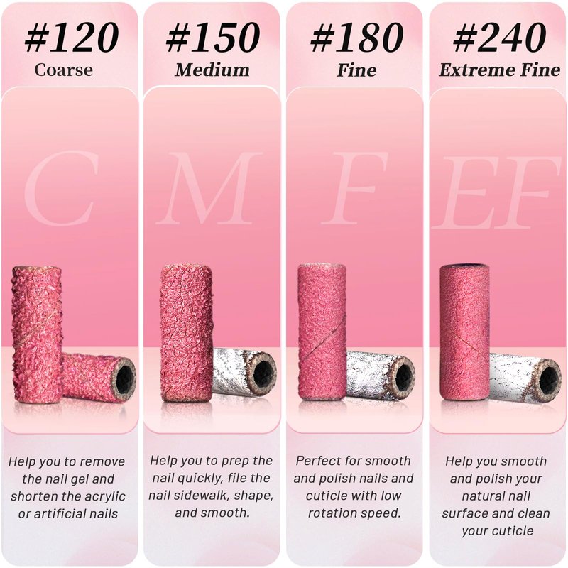 - Nail Drill Sanding Bands - Wide Application: METEOROCK small sanding bands for nail are suitable for most 3/32" nail drill machines. They are suitable for nail salon, beauty store, spa or DIY home manicure and pedicure, a useful tool for any nail technician or beginner. They are also a perfect gift for ladies to save a lot of time and money on their manicure