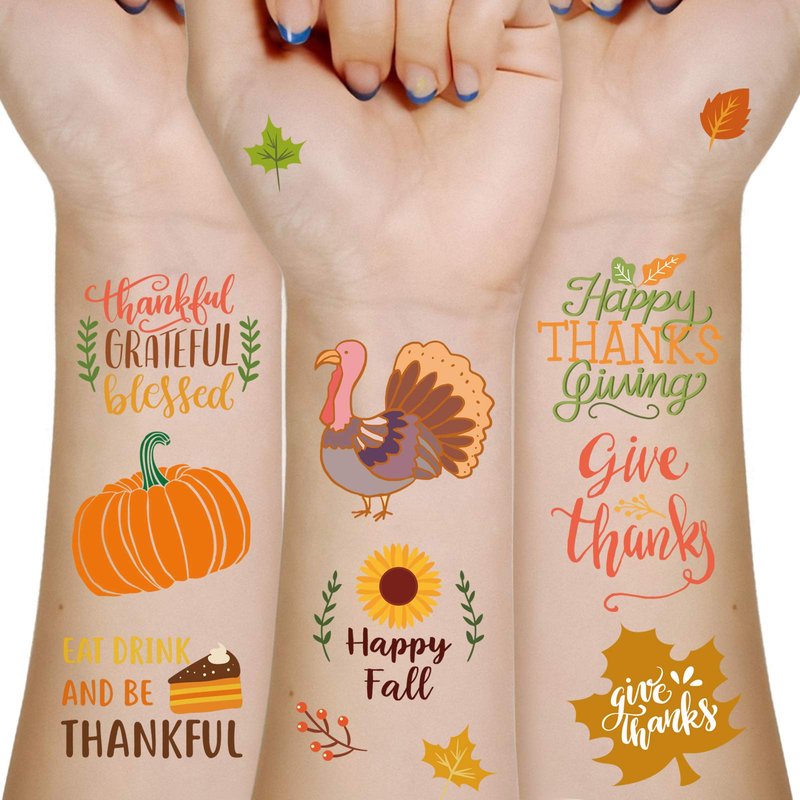- Share these classic thanksgiving tattoos with your family, friends, or kids during thanksgiving dinner and have fun.Perfect for Thanksgiving party favors, turkey hats, turkey costume and festive occasions.