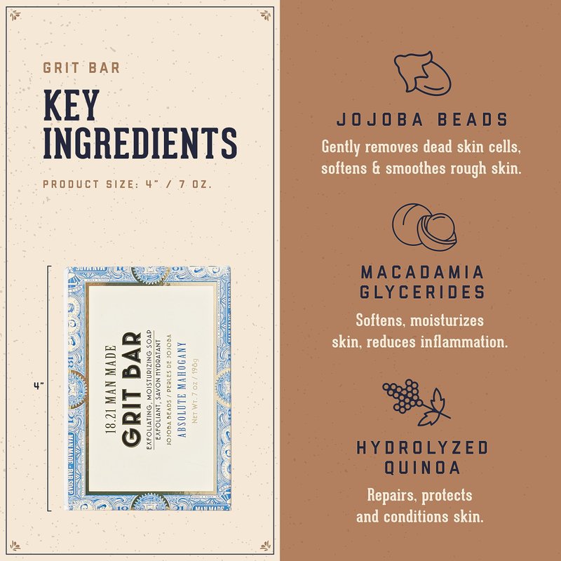 18.21 Man Made Grit Bar Soap, 7 fl. oz.