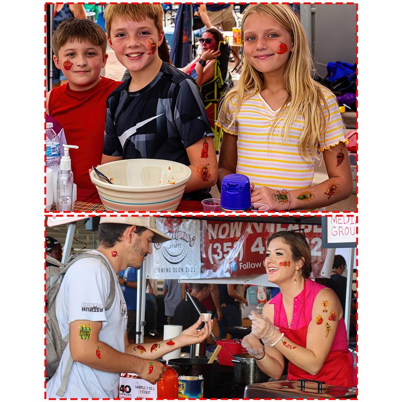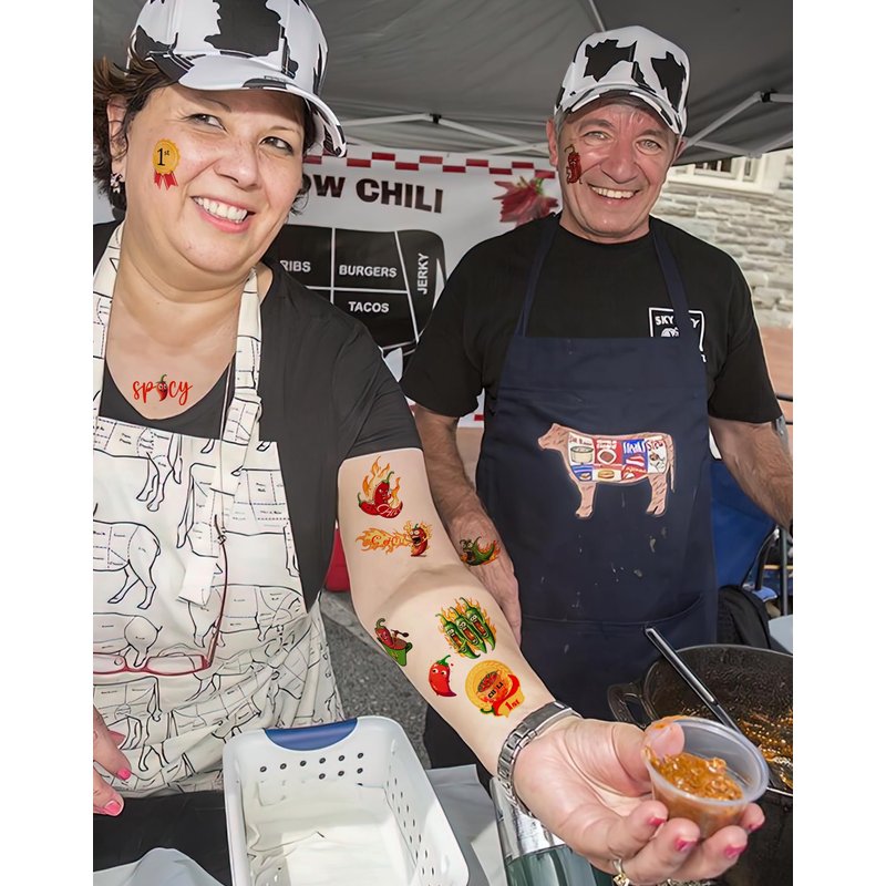 - Friendly to Skin Chili Cook Off party decorations,our temporary tattoos have been put through rigorous party testing and are 100% guaranteed to last all day,Non-toxic, harmless and tasteless, the tattoos do not cause irritation