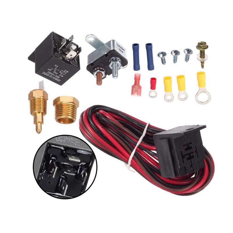 - 【Package Includes】This kit includes everything you'll need to hook up to your fan, includes a brass adapter to install the sending unit, wires, relay switch, circut breaker, terminals and mounting screws.