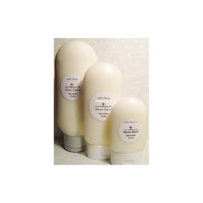 Our rich shea butter lotion is made with the same formula as our popluar Winterblend Shea Cream. 8oz soft sided squeeze bottle stores upside down on it's flip top cap for ease of use and can be refilled. Super moisturizing and good for sensitive skin. This is our scented version - great for people without allergies to fragrance products. See our cream listings for unscented moisturizing products.