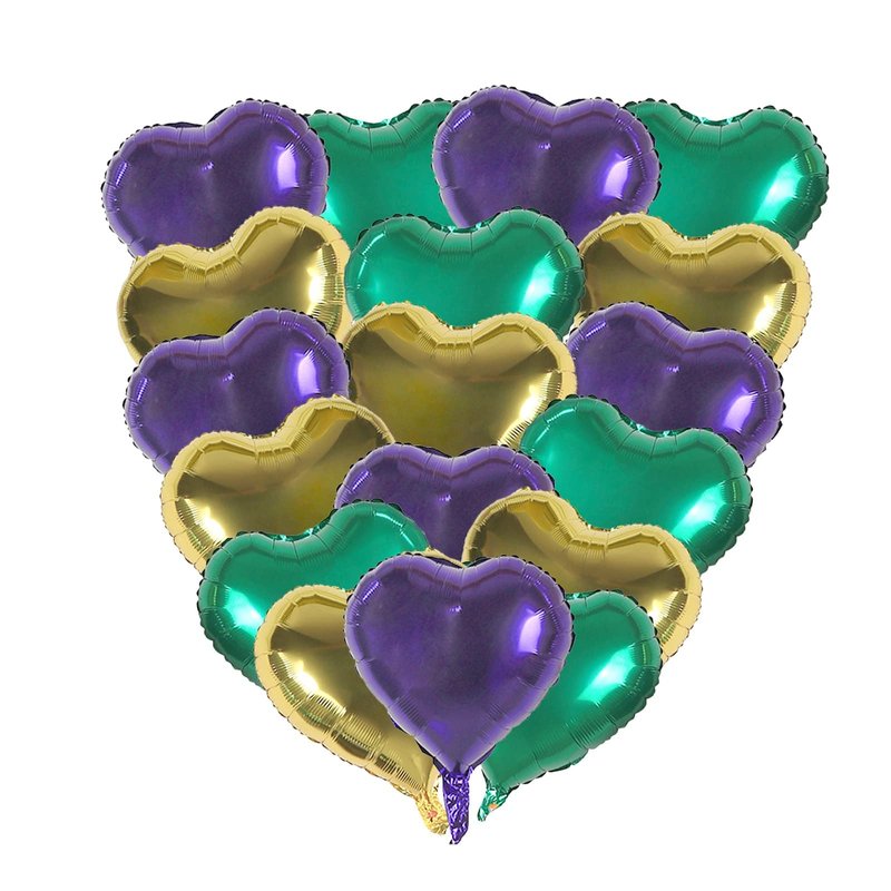 18pcs 18" Gold Purple Green Heart Balloons Mardi Gras Foil Balloons