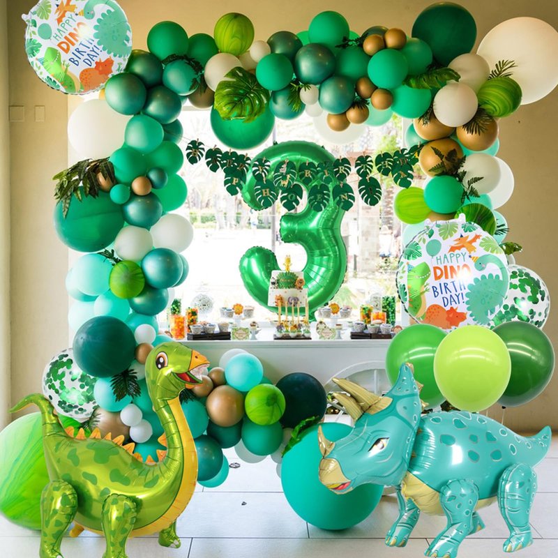 - 【High-Quality】Crafted from durable latex and mylar foil these balloons are non-toxic and harmless. They are designed to be filled with either air or helium, ensuring long-lasting enjoyment. This comprehensive dinosaur birthday decorations set can fulfill all your party needs in one go. don't fill the balloon too much The inflation of the aluminum film balloon is generally about 90%, prevent the balloon from bursting.