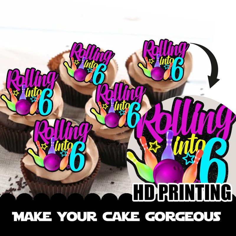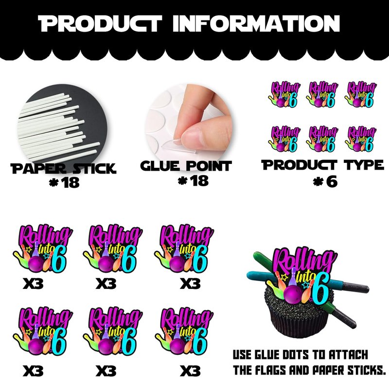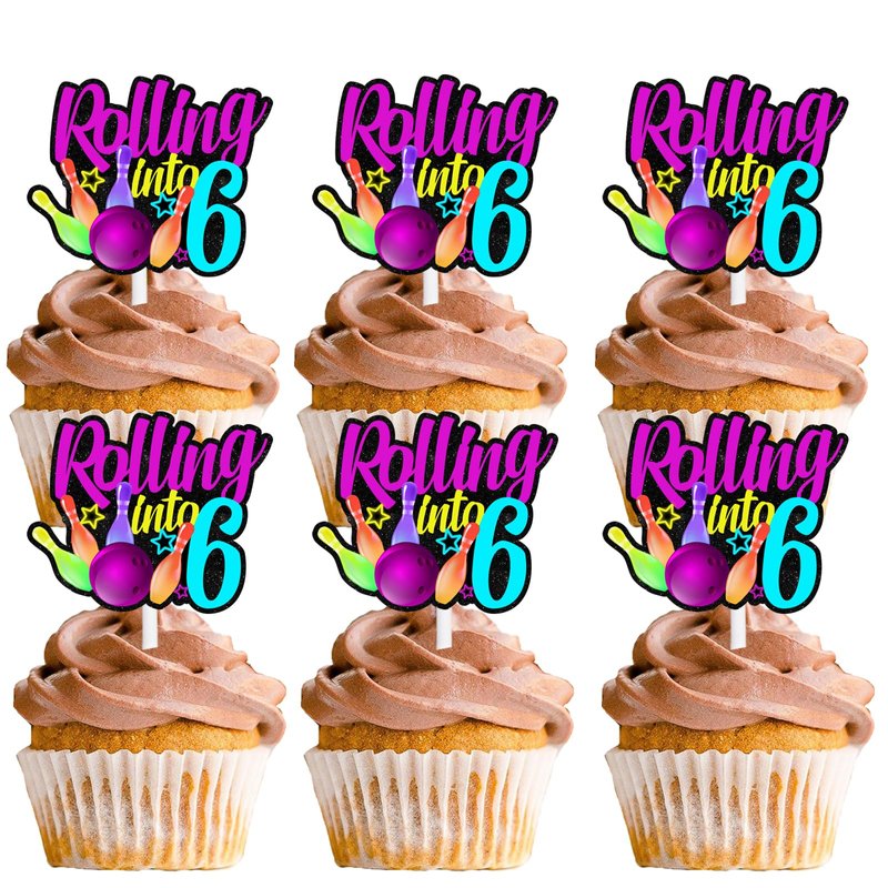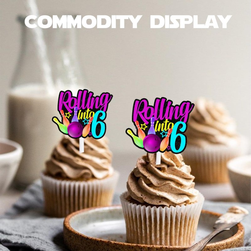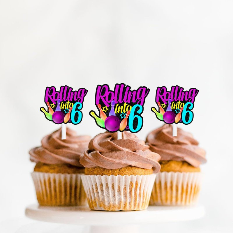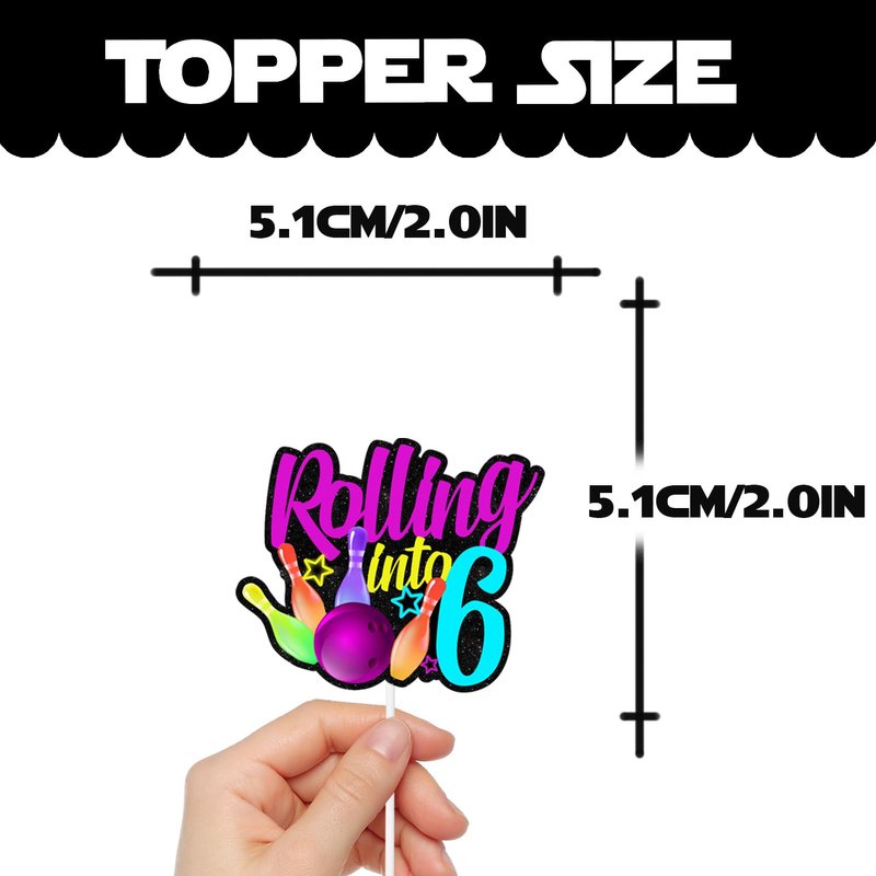 18pcs Glitter Bowling Ball Dessert Cupcake Topper Bowling Rolling into 6 Theme Decor Supplies Boys Girls Happy 6th Birthday Party Decorations