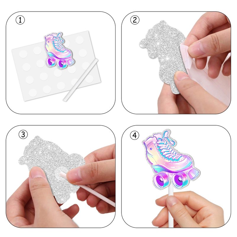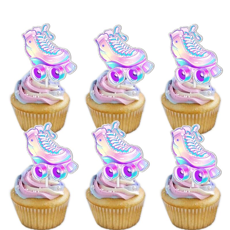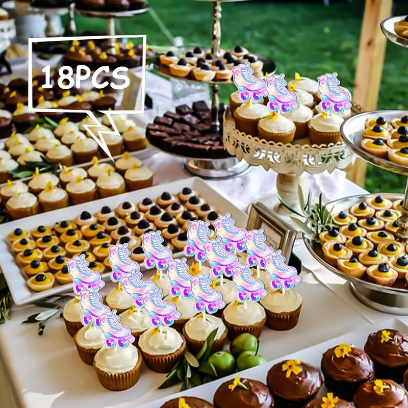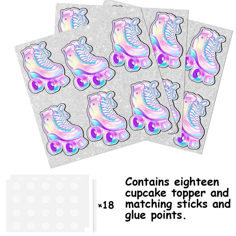18pcs Glitter Roller Skates Dessert Cupcake Topper Children Boy Girl Happy Birthday Party Decorations 80s 90s Retro Hip Hop Roller Skating Theme Decor Supplies