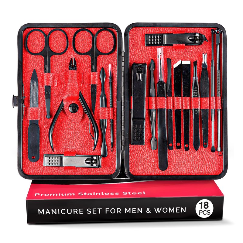 18pcs Stainless Steel Manicure Kit for Men & Women - Professional Manicure Pedicure Set - Portable Women Grooming Kit for Home or Travel - Cuticle Kit with Nail Clipper Set, Scissor, Tweezer, Ear-Pick