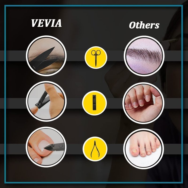 - Rust-Free and Super Sharp: Thick fingernails and toe nails are no longer a pain because the nail clippers in this manicure kit deliver a quick, painless and clean cut. Made from surgical-grade stainless steel with rubber handles for superior grip & tear-free cut