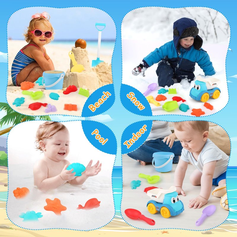 - 【Creative Beach Toys Set】This beach toys and tools set has bright colors and cute shapes, which can stimulate children's imagination and creativity. Kids can create sandcastles and sea animals on the beach to increase their sense of accomplishment and train hands, fine motor skills and hand-eye coordination. The fun is endless playing with sand and can also be used as a pool toy, backyard, pool and snow game.