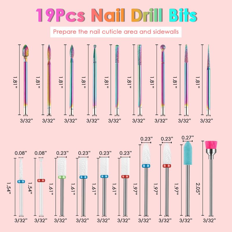- Multi-functional Compatibility: These nail drill bits are designed with standard 3/32 inch, making them suitable for most electric nail drills and rechargeable nail drill machines. This nail drill bits kit is ideal for professional nail salons, nail art tutorials and tech, DIY nail art at home.