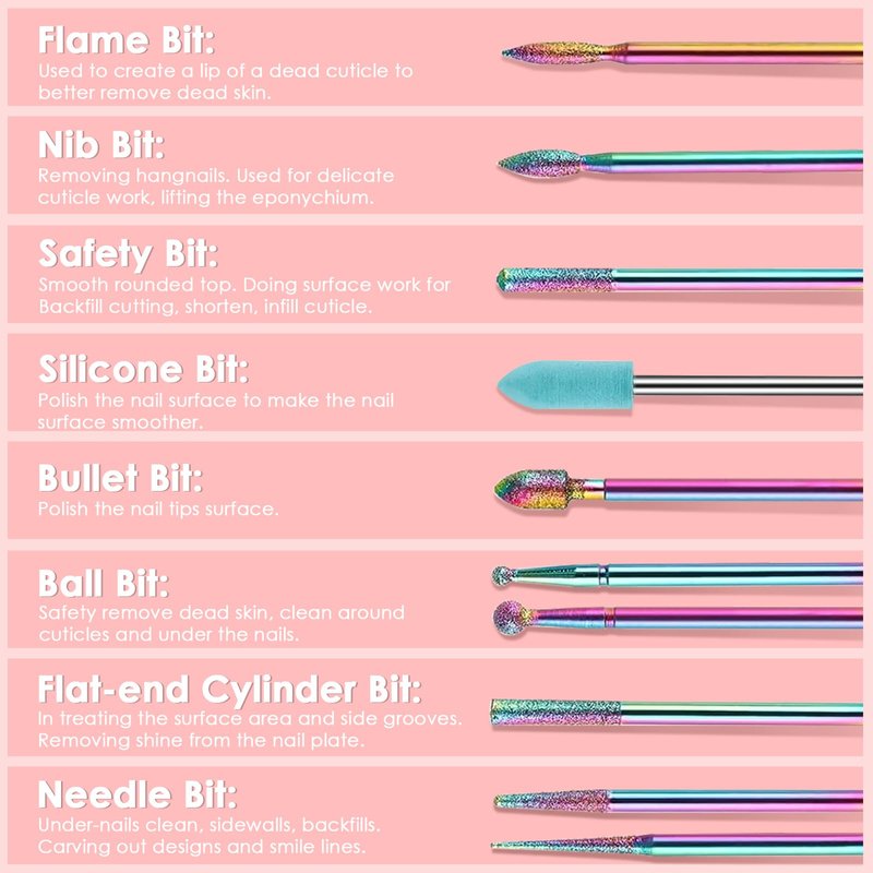 Seamlessly integrate these multi-functional drill bits into your nail care routine, as they are compatible with most electric nail drills and rechargeable nail drill machines.