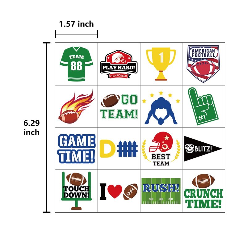 - Football game tattoos assortment includes Go team, play hard, game time , some cheering words, etc.