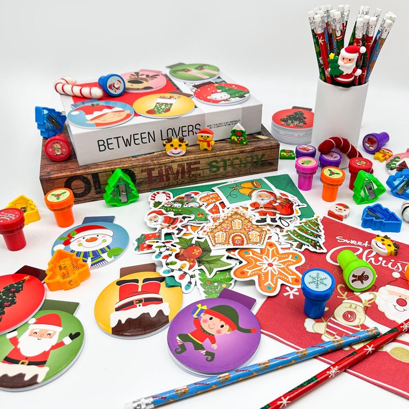Christmas stickers pencil sharpener erasers set are 24 of each type, and you can pack them separately as classroom gifts for 24 children.