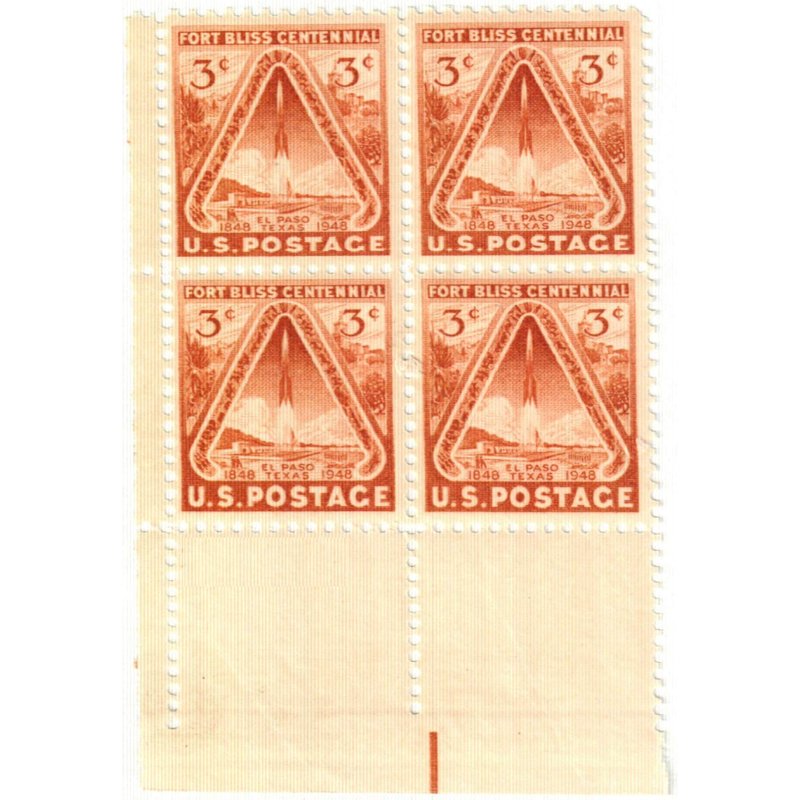 1948 Fort Bliss Centenial 4 x 3 ¢ US Postage Stamps New US# 976