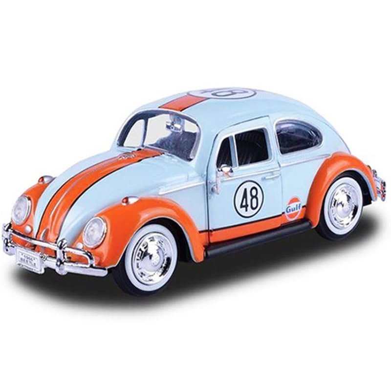 1966 Beetle #48 with Gulf Livery Light Blue with Orange Stripe 1/24 Diecast Model Car by Motormax 79655