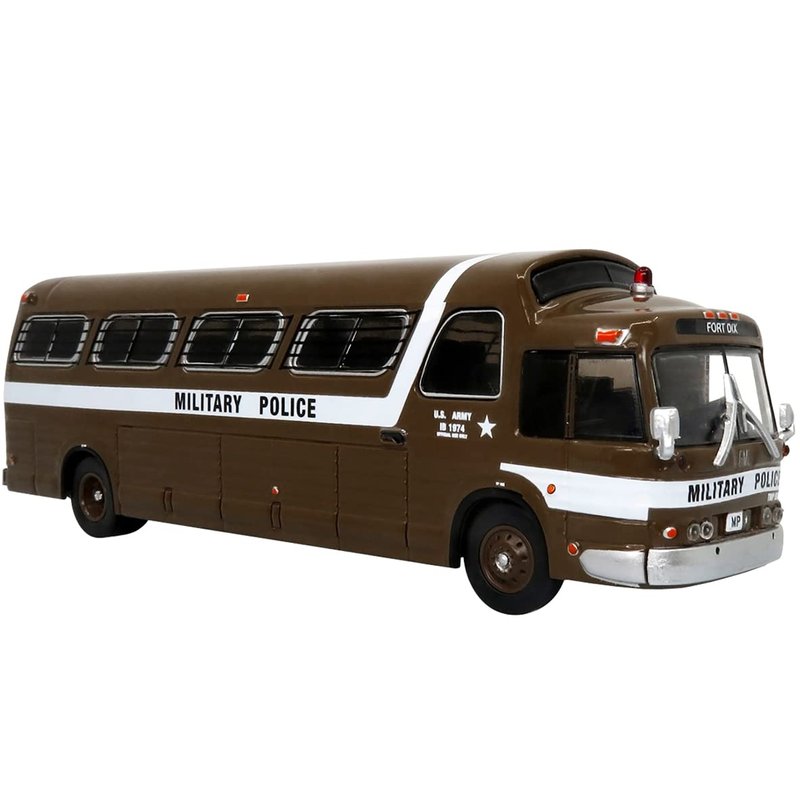 Brand new 1/87 (HO) scale diecast model of 1966 PD4107 "Buffalo" Coach Bus U.S. Army Military Police Destination: "Fort Dix" "Vintage Bus & Motorcoach Collection" die cast model by Iconic Replicas 87-0289