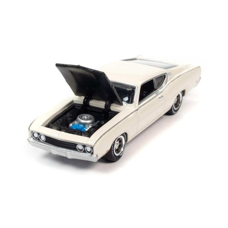 Brand new 1/64 scale diecast car model of 1969 Torino Talladega Wimbledon White with Matt Black Hood "Classic Gold Collection" Series Limited Edition to 10548 pieces Worldwide die cast model car by Johnny Lightning JLCG028-JLSP222A